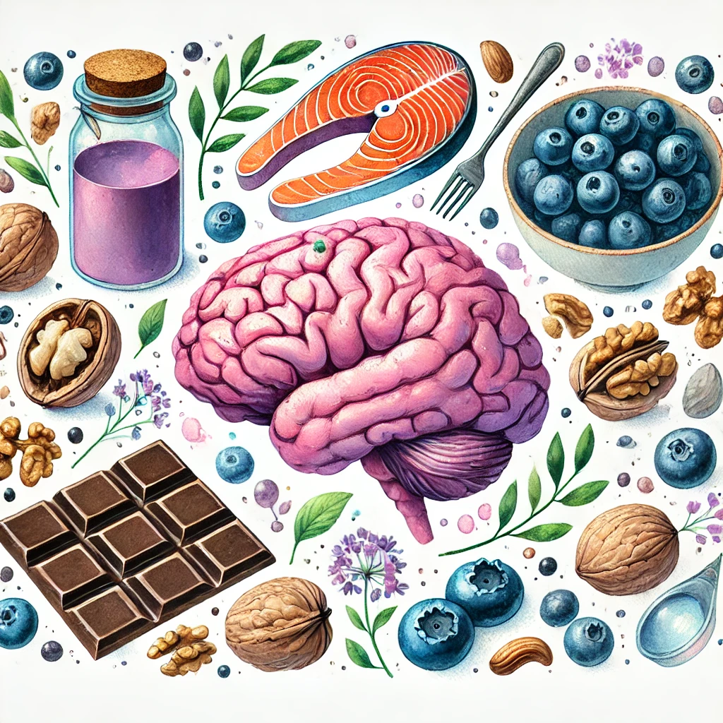 두뇌 건강을 위한 음식들 (연어, 견과류, 블루베리, 다크 초콜릿 등)