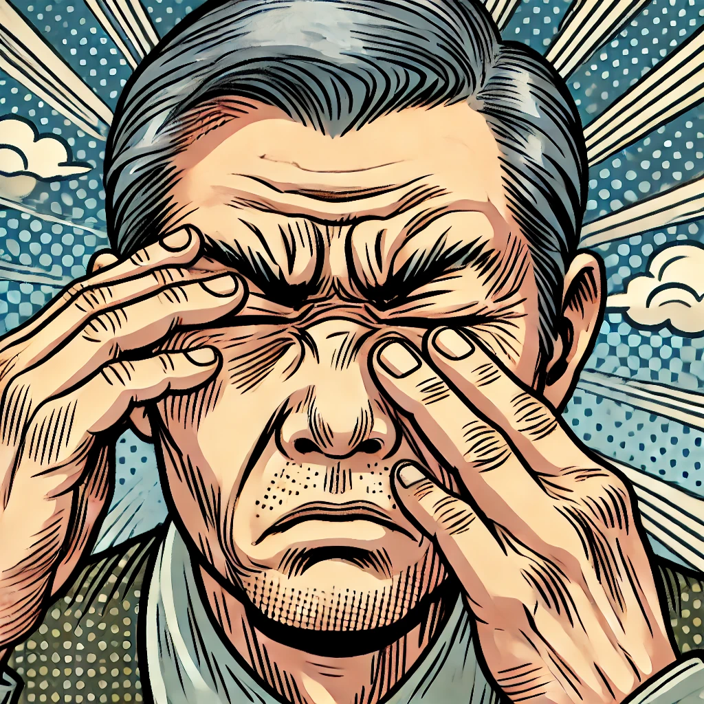 시야가 흐려져 눈을 비비는 노인 남성 (백내장의 초기 증상)