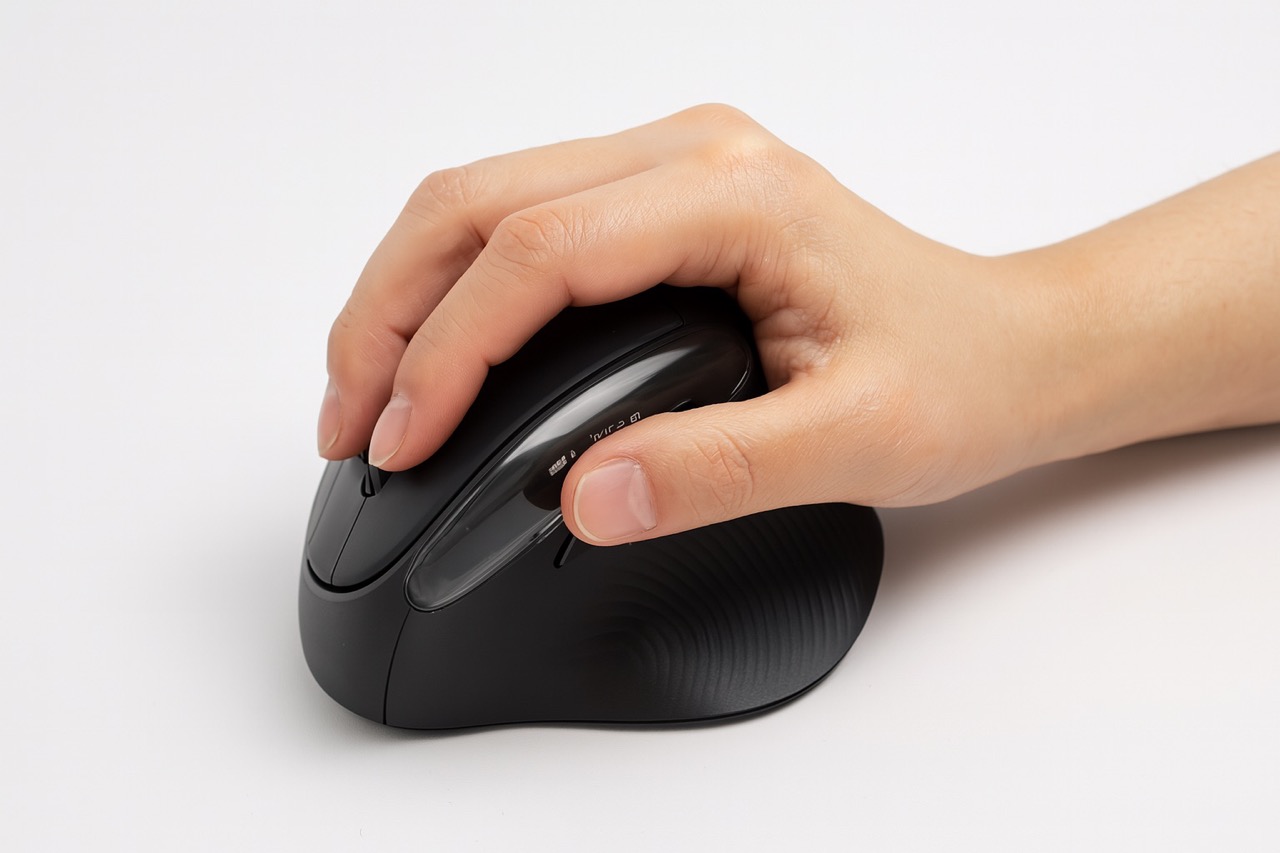 버티컬 마우스는 손목이 자연스럽게 악수하듯 비스듬히 놓이도록 도와주며, 손목 근육의 긴장을 덜어주는 데 효과적입니다. 손목에 부담을 덜 주는 마우스는 단순한 IT 기기가 아닌, 손 건강을 위한 도구입니다.